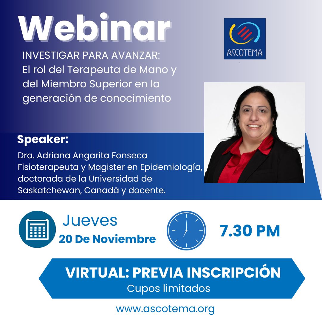 🎓✨ ¡No te pierdas nuestro próximo webinar INVESTIGAR PARA AVANZAR : El rol del Terapeuta de Mano y del Miembro Superior en la generación de conocimiento”